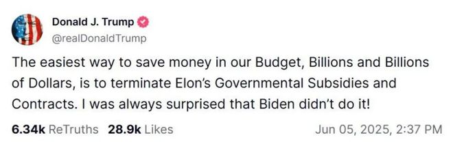 矛盾迅速在仅仅一天内就恶化了。当地时间5日,在公开场合两人发生了“口水战”。马斯克针对“大而美”法案连续发出多项帖文,声称且表示“你要么得到一份庞大而有着丑陋样子的法案,要么得到一份小而呈现美的法案。小而美方才是走出困境迈向成功的道路”。特朗普于白宫针对前边提及的种种对此作出回应,说道:“你瞧,我跟埃隆以往的关系曾经是很不错的。我不清楚我们往后还会不会依旧这样。我对埃隆是相当失望的。我曾经帮过他特别多的。”马斯克再次发帖进行回应,讲出这样的话语,称“要是没有我存在的话,特朗普就会面临输掉大选的局面”,并评价“像这样表现出如此忘恩负义的行为”。特朗普针对此情况进行反击,称就算没有马斯克,他依旧能够赢得选举,特朗普还进一步表示,要想在预算里节省数十亿美元,最为简单的方式便是终止马斯克所享有的政府补贴以及废除与马斯克的合同,他还说自己一直很诧异拜登居然没有这么做 ,马斯克最后扔出极具杀伤力的重磅消息,爆料特朗普的名字是出现在爱泼斯坦案档案之中的,还指着说这才是那些文件没有公开的真正缘由。