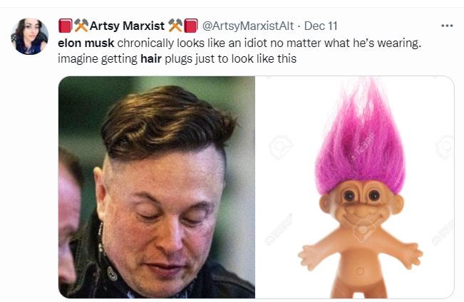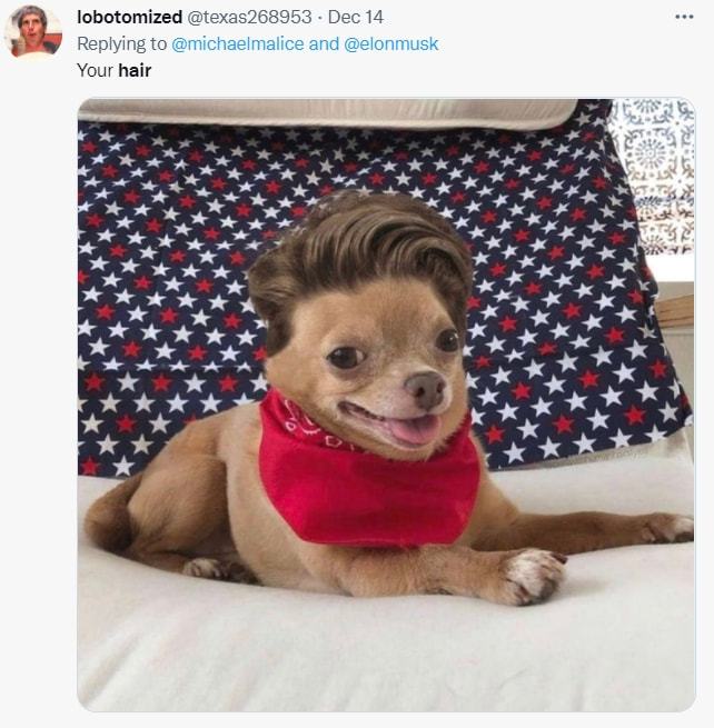 只是,马斯克进行的自嘲,并未使那些行为举止可笑、言语滑稽的网友们,产生想要吐槽他的那种想法的心,就此冷却下来,针对他这个难看发型玩的梗,一个接着一个。
