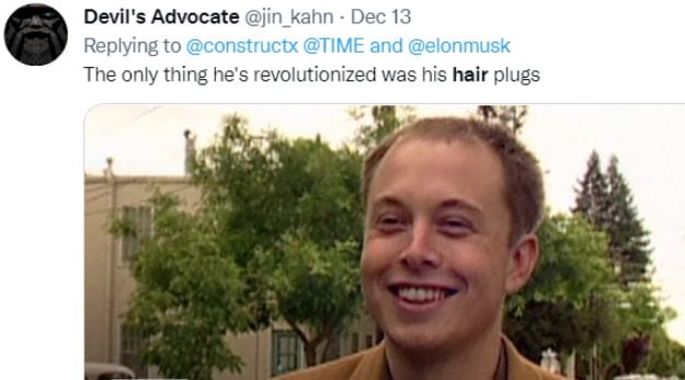 有的网友觉得,马斯克的新发型着实是太引人注意了,认为获得年度人物的应当仅仅是马斯克的头发,而要拒绝马斯克位于头皮以下的那些部位去蹭头发所带来的热度。