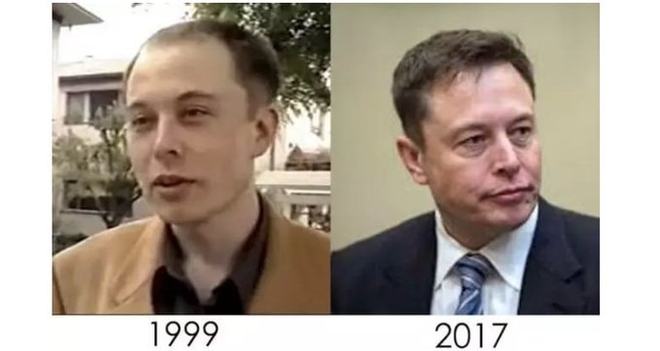 是这样的,在马斯克成为企业家之后,不得了,他的头发居然莫名其妙地增多了,于是乎,大家就老是去猜测,这些增多的头发究竟是从哪里突然冒出来的,然而,对于做植发手术这件事情,马斯克他从来都不承认,所以,大家可以去看一看对比图,然后自行去判断一下。