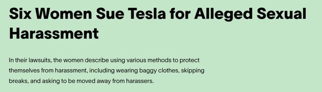 在他被评选成年度人物的次日,特斯拉公司被六名员工告上法庭,这六名员工中的每个人在特斯拉工作之时均遭到了同事以及领导的极为严重的骚扰,甚至还因这骚扰而被威胁会被雪藏。