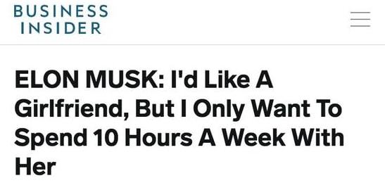 然而是要讲些道理的,马斯克于和格里姆斯一同度过的这几年期间,已在相对的程度上呈现出“顾家”的状态了。早些年的时候,他那颇为知名的言论可是这样子的,“我怀有想要结交一名女朋友的想法呀,然而仅仅是甘愿每周拿出10小时去陪伴她罢了。”。