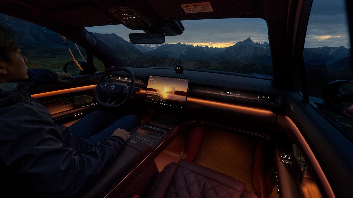 辅助驾驶这块儿,全新ES8装了三颗高精度激光雷达,还有前视摄像头以及4D成像雷达等,总共31个感知元件,它内部设置了自研的神玑NX9031芯片,搭载了蔚来世界模型NWM智能安全辅助系统,能够达成点到点全域领航辅助能力。